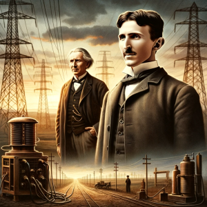 Edison és Nikola Tesla közötti kapcsolat kezdetben baráti, később ellenséges volt. Tesla, aki az egyenáramú rendszerek helyett a váltakozó áramot favorizálta, kilépett cége alól, és az üzleti harcuk egészen az 1960-as évekig tartott. Többek között arra használta fel befolyását, hogy az elektromos széken történő kivégzéseket váltakozóárammal hajtsák végre, ezzel is bizonyítva állítólagos veszélyességét. Egyik legtragikusabb eseménye ennek, amikor nyilvánosan kivégeztek egy elefántot váltakozóárammal, amit filmre is vettek. Sajnálatos, hogy az üzleti érdek védelme elfajult ilyen brutálisan.